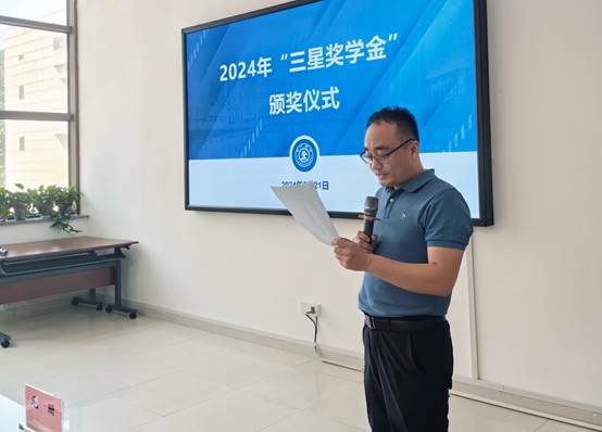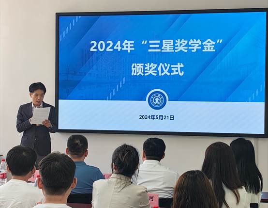教育基金会秘书长助理毛珊宣读获奖学生名单,本次共有9名本科生和13名研究生获得本年度“三星奖学金”。三星(中国)半导体有限公司、教育基金会、研工部负责人为获奖学生颁发证书及奖品。