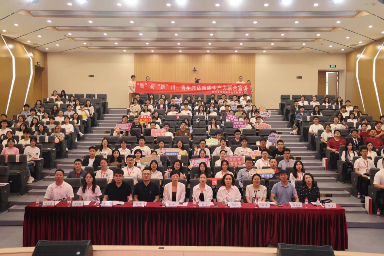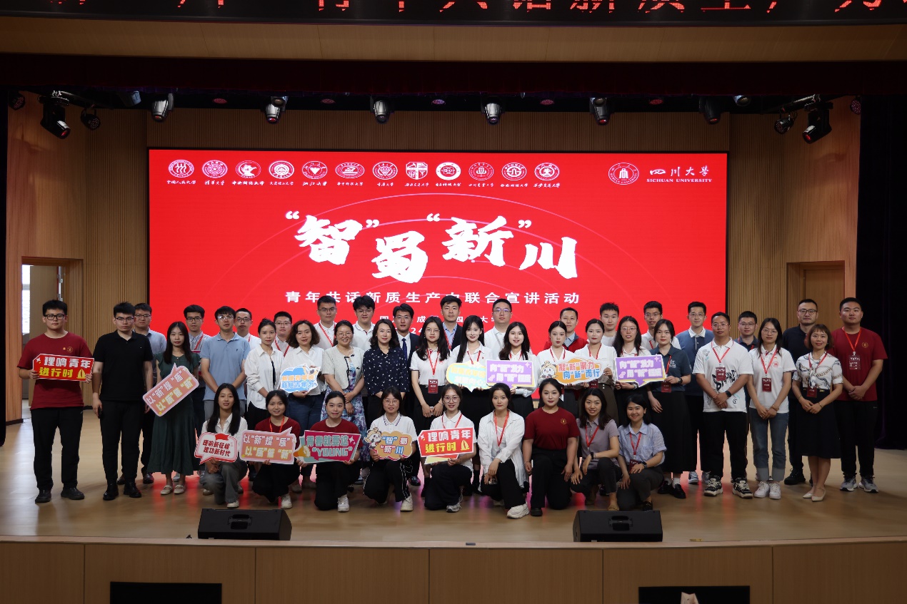 为引导广大青年在理论宣讲中全面学习新质生产力的科学内涵,深刻感悟新质生产力的发展成就,积极投身发展新质生产力的伟大实践,近日,四川大学、西安交通大学、清华大学、浙江大学、中国人民大学等13所高校在四川大学望江校区开展“智”蜀“新”川——青年共话新质生产力联合宣讲活动,在互学互鉴中凝“新”聚力,以“新”为引领,迈向“新”目标,激活发展新质生产力的青春动能,以优异成绩迎接中华人民共和国成立75周年。副部长(挂职)、学生微宣讲团指导教师刘源,学生微宣讲团代表张宇航受邀参加活动。