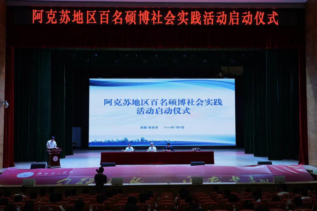 7月8日上午,阿克苏地区百名硕博社会实践活动在新疆理工学院海容楼拉开帷幕。阿克苏地区地委书记吴红展亲临现场并讲话,强调学子们应当珍惜实践机会,努力成长为有理想、有才华、有担当的新时代青年才俊,在实践中锤炼专业技能,为实现中华民族伟大复兴贡献智慧和力量。