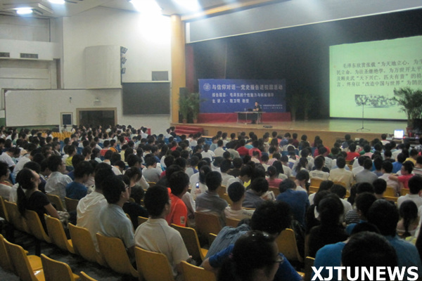 6月7日晚,与信仰对话——党史报告进校园活动在宪梓堂举行,本次活动由西安交通大学团委主办,西安交通大学仲英书院团工委学生会承办,邀请到人文学院陆卫明教授作了题为“毛泽东的个性魅力与权威领导”的报告。