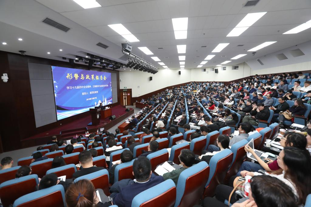 12月27日下午,由中共陕西省委教育工作委员会主办,陕西大学生形势与政策教育信息中心和承办的“形势与政策报告会”在西安交大科学馆举行。国家创新与发展战略研究会资深研究员、中央党校文史部兼任教授、华南理工大学印度洋岛国研究中心学术顾问谢茂松应邀作题为《学习十九届四中全会精神,正确看待当前国内外形势》的报告。陕西省兄弟院校代表、西安交通大学党委理论学习中心组一组二组全体成员及部分师生代表400人参加会议。西安交通大学党委常委、宣传部部长成进主持会议。