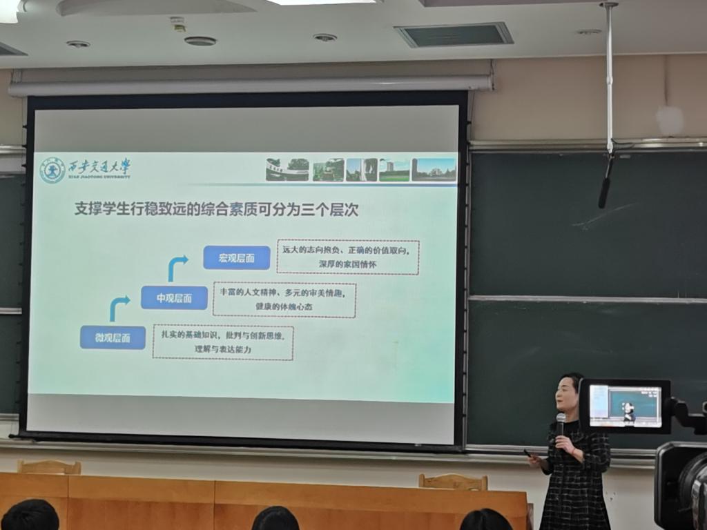 杨程详细介绍了学校目前通识课程体系中各模块的课程建设情况和课程特色,鼓励学生在满足学校关于通识课程总体学分要求的前提下,结合自身实际及个人兴趣多选多修。在选课前要做好功课,熟悉选课指南,认真阅读选课规则,不仅了解全校性选课要求和学分模块,而且熟知各学院的个性化选课要求。同时,通过关注交大通识教育微信公众号了解相关课程简介,选课时兼顾知识结构的需要和个人兴趣的培养。