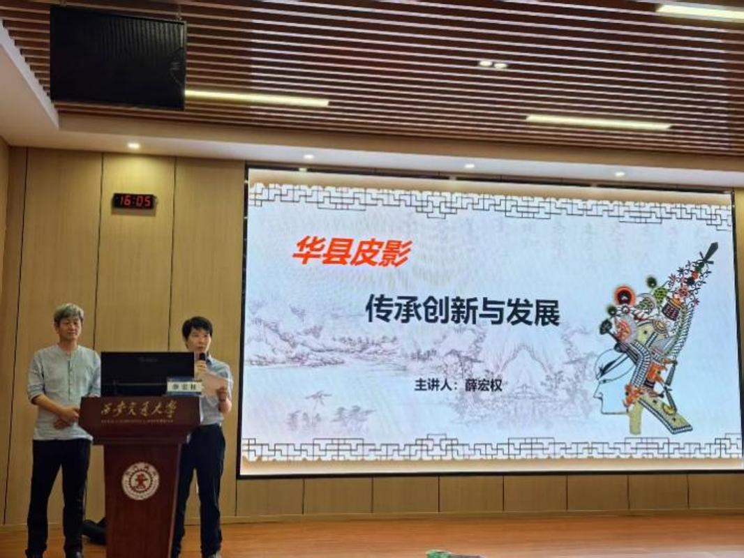 为营造高校美育氛围,提升学生审美感受力和鉴赏力,开发高校美育第二课堂,6月12日下午,由西安交通大学研究生院、人文学院主办的新港报告之美育高端论坛第二十四讲在高等工程教育博物馆美育多功能报告厅火热开讲。国家级非遗项目华县皮影戏制作技艺代表性传承人、中国工艺美术大师薛宏权老师为交大学子带来题为《华州皮影传承创新与发展》的报告。西安交通大学人文学院党委书记纪梦然,西安交通大学档案馆副馆长李一鸣,华州皮影非遗传承人骞小凤,渭南市华州区明清皮影博物馆市场部负责人李卓妍等受邀作为嘉宾参与本次论坛。论坛由人文学院副院长张勇主持。