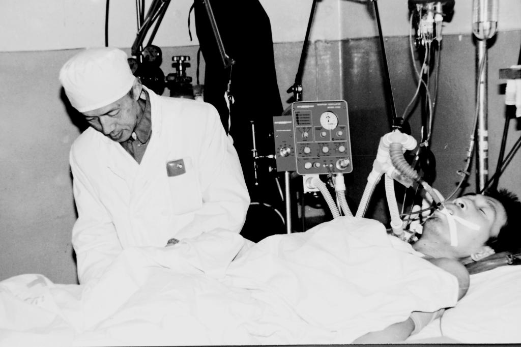 他在绝大多数时间都和患者在一起,我们所看到的只是一幅照片,一个片段,事实上照片中的场景已经延续了两三个月。每每到深夜,杨老都会在危重患者病房,有些年轻医生都坚持不下来了,他依然精神饱满,专心致志。对危重病、疑难病患者,这位头发苍白的教授会和大家一起抬着患者去拍X片或做其他各项检查,他监护术后患者,观察着每一个细微的病情变化,这些现在看来医患之间不可想象的事情全都是以前杨老的日常工作范畴。