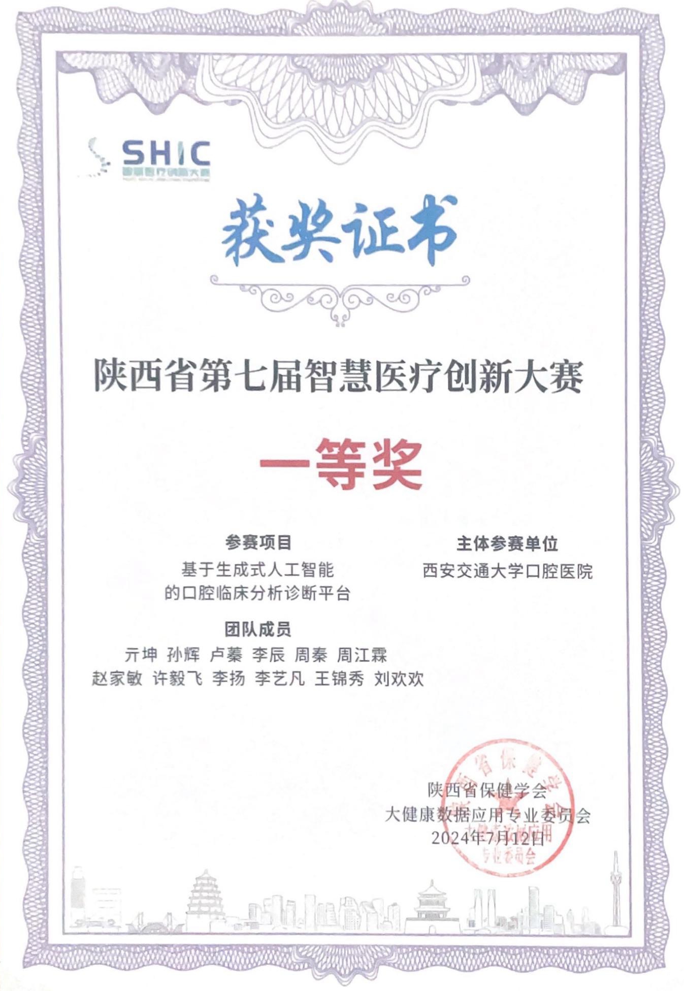 近日,第七届智慧医疗创新大赛—陕西赛区决赛在西安举行,口腔医院智慧口腔团队申报的“多模态智能口腔临床分析诊断平台”获得评委们的一致认可,在全省30多个项目中脱颖而出,荣获陕西赛区一等奖。该项目被推荐至总决赛,将代表陕西省参与全国智慧医疗大赛的角逐。