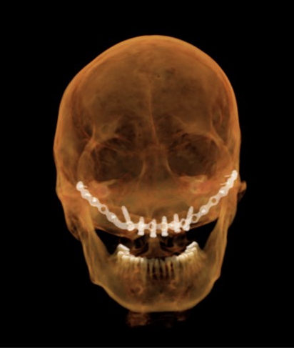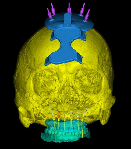 针对该患者的病情特点,杜良智主任团队联合西安交通大学第一附属医院神经外科李奇副主任医师经过多次会诊、反复确认,决定选择最靠近术区、最易实现和最安全可靠的颅骨来固定手术机器人工作标记物。并在术前借助数字化手段建立虚拟患者,模拟手术方案,反复验证可行性,确保最安全、最理想的种植修复效果。