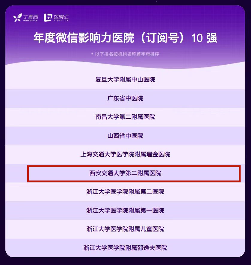 西安交大二附院宣传工作持续围绕医院339目标,在医疗技术、学科发展、人才建设等各方面持续发力,自参与医院品牌指数评比以来,已连续四年获得该领域荣誉。