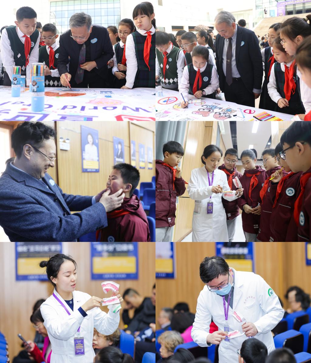 启动仪式后,丰富多彩的口腔健康宣教活动在汉中东辰外国语学校举行。张志愿院士、王松灵院士分别为学生们开展了题为《外科医生是什么样的人》、《小口腔,大健康》的院士大讲堂;参会专家们与同学们一起绘画,并深入课堂与学生亲切互动,用丰富多彩、寓教于乐的形式,为孩子们开展口腔健康教育。