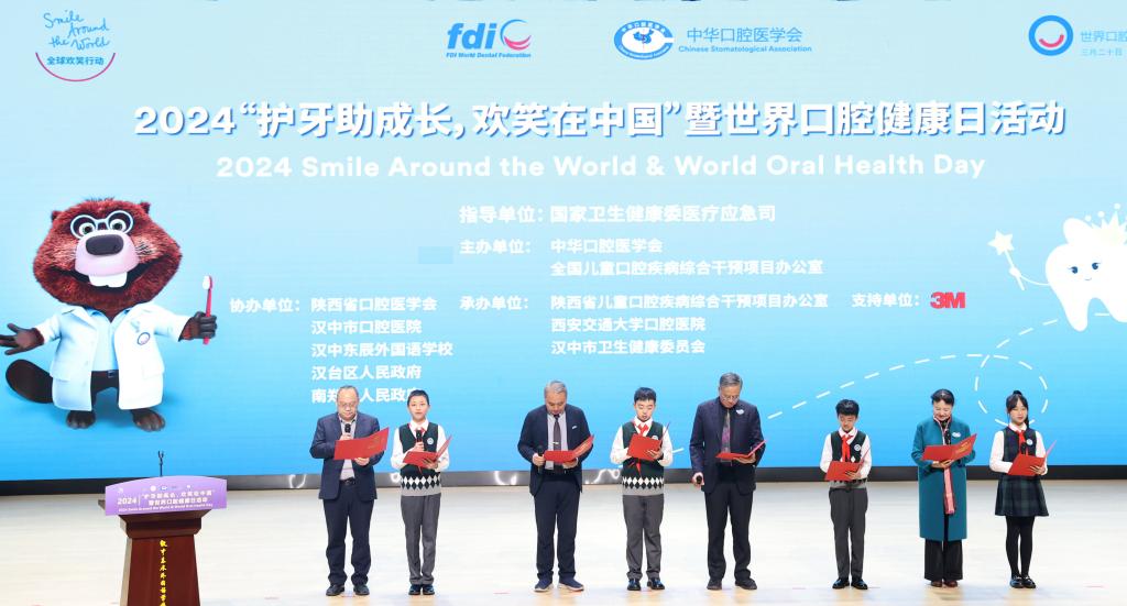 3月20日上午,2024“护牙助成长,欢笑在中国”暨世界口腔健康日活动在陕西汉中举办。此次活动由国家卫生健康委医疗应急司作为指导单位,全国儿童口腔疾病综合干预项目办公室、中华口腔医学会主办,陕西省儿童口腔疾病综合干预项目办公室、西安交通大学口腔医院承办,陕西省口腔医学会、汉中市口腔医院协办。
