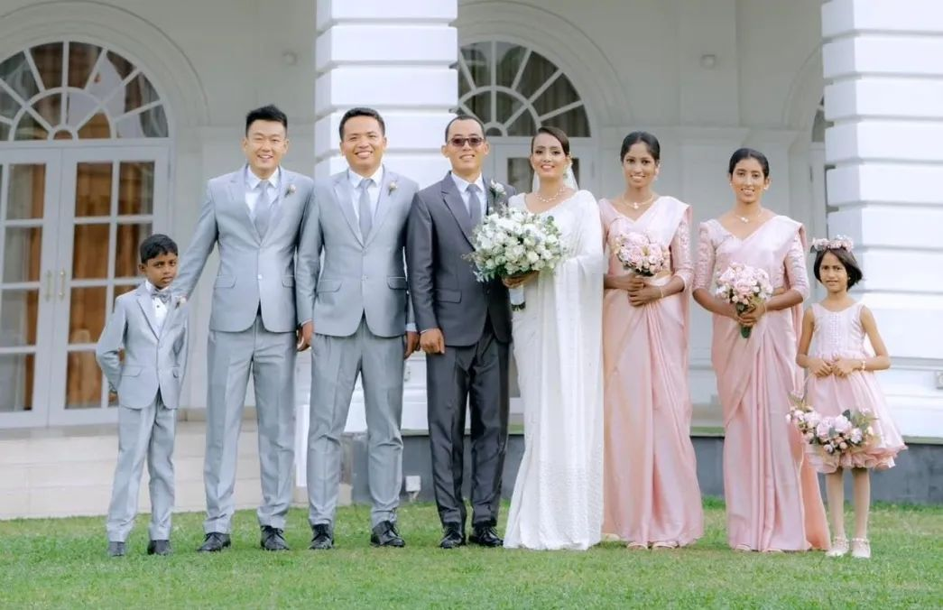 身着笔挺西装的新郎吕飞飞和披裹精致纱丽的新娘卢曼雪登台,主婚人用一条红丝带将二人小手指绑在一起,新人满含笑意凝视彼此,将手紧紧合拢……这是2023年8月18日,在斯里兰卡首都科伦坡的一家酒店内,当地传统婚礼——“波鲁瓦”仪式上的一幕。