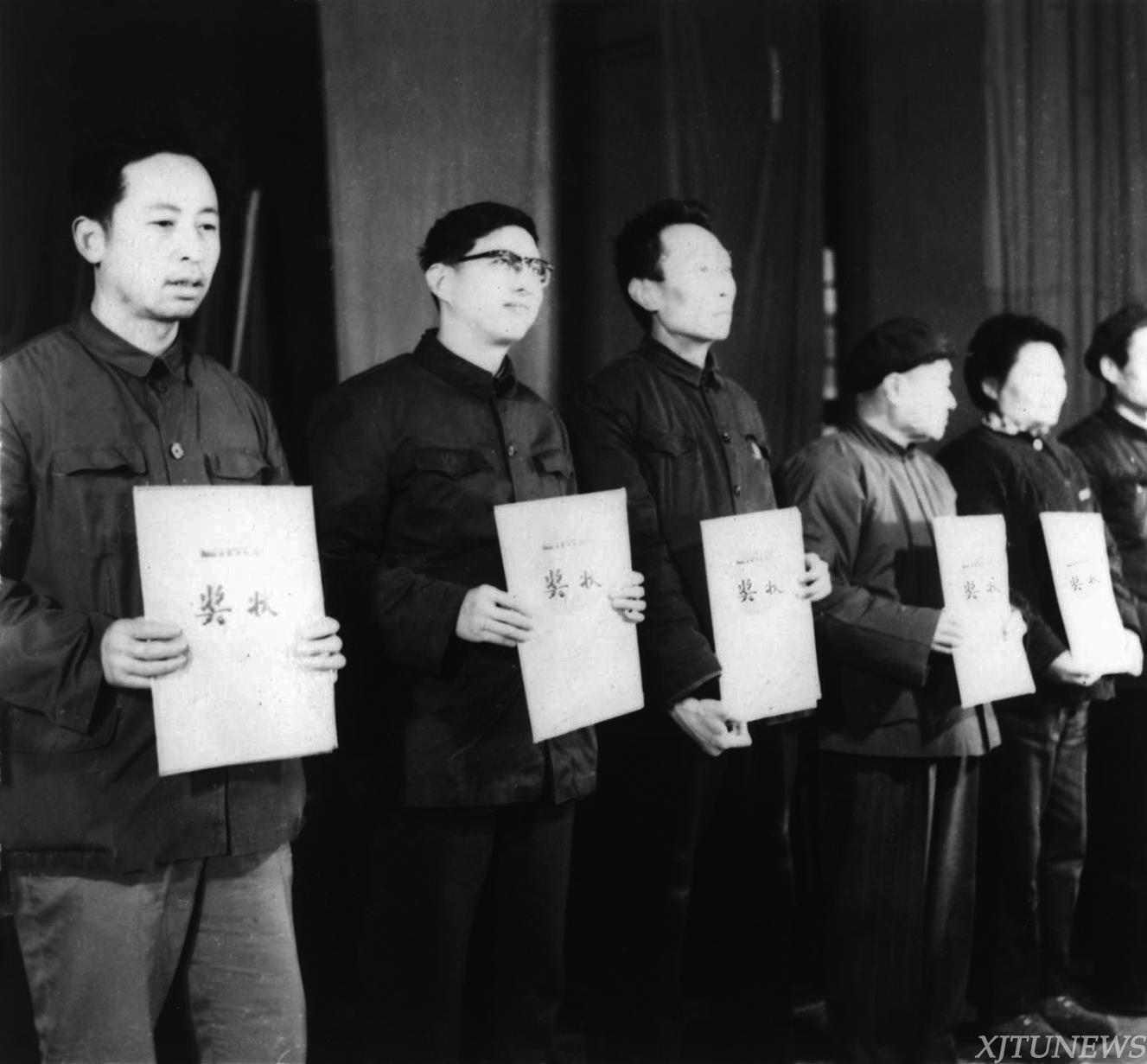 3月18日-24日,全国科学大会召开,科学的春天来临。此次大会上,金属材料及强度研究室被授予先进集体称号,全校有37项科研成果荣获嘉奖。图为周惠久教授(左四)上台领奖