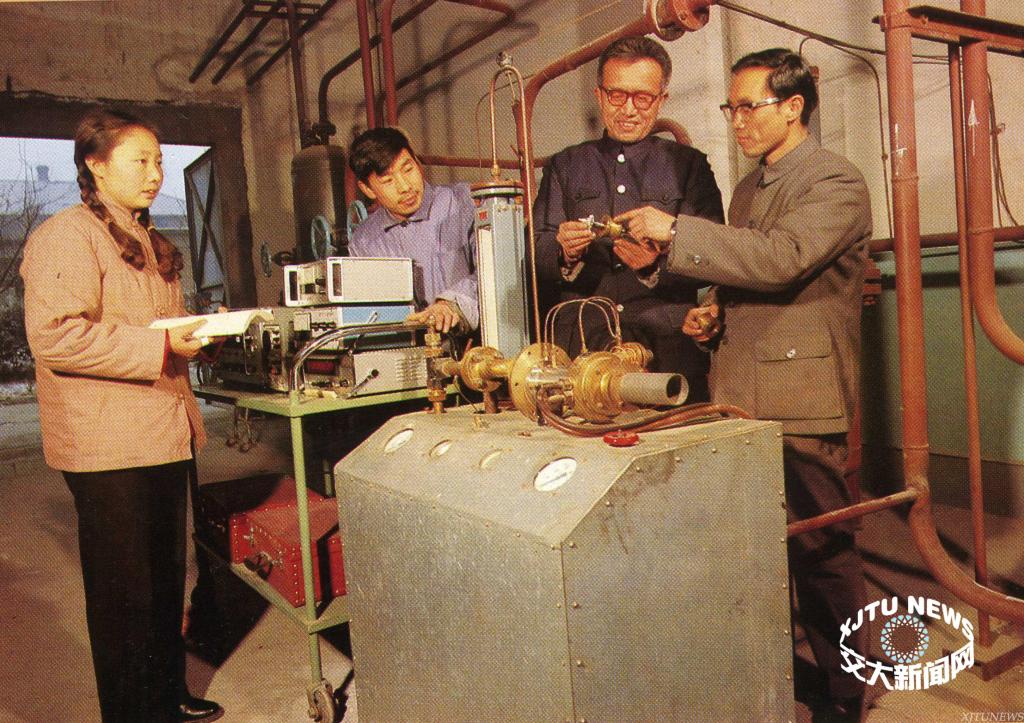 1981年8月6日,经国家科学技术委员会发明评选委员会评定,西安交大PLK8.33×2/20-6橡皮加稳空气轴承中压透平膨胀机获科技发明三等奖,50公斤摇臂式电磁锤、XH-30低压大电流选相合闸装置两项获科技发明四等奖。图为PLK8.33×2/20-6橡皮加稳空气轴承中压透平膨胀机项目组