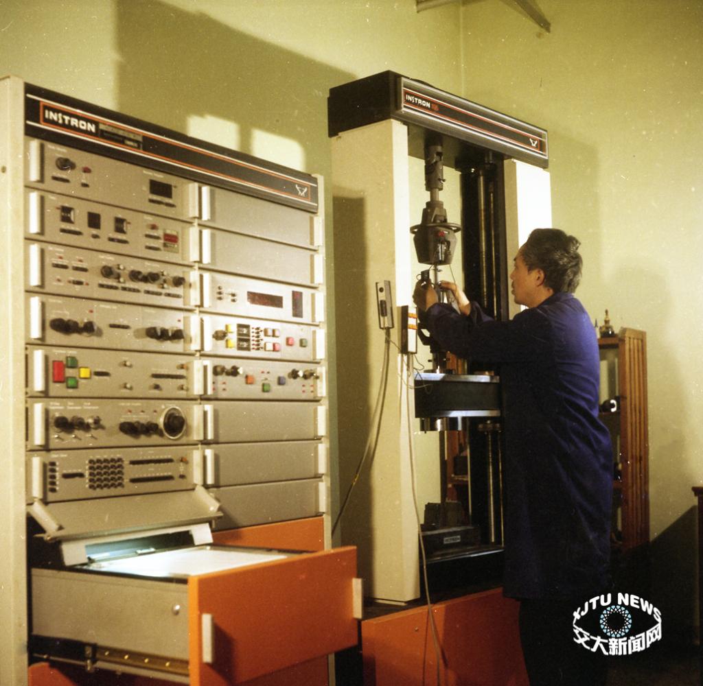 1983年5月12-22日,中国机械工程学会材料委员会和陕西省机械工程学会举办的“低碳马氏体理论研究及其应用”学术讨论会和“低碳马氏体理论及应用研究”鉴定会召开,认为金属材料及强度研究所的该项研究成果在国际和国内都处于领先地位。图为科研人员在做强度拉伸实验