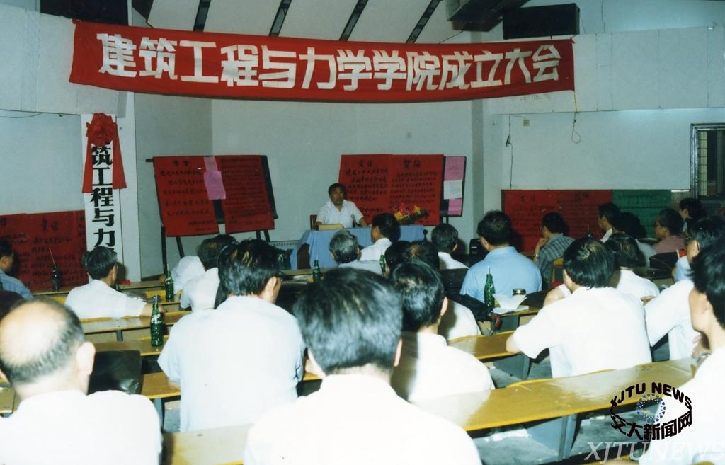 1994年,化学工程学院、能源与动力工程学院、材料科学与工程学院、理学院、机械工程学院、电子与信息工程学院、建筑工程与力学学院、人文社会科学学院、工程与科学研究院、体育部相继成立。至此,校院系三级管理体制的格局业已形成。上图为五院一部成立大会,下图分别为理学院成立大会、建筑工程与力学学院成立大会