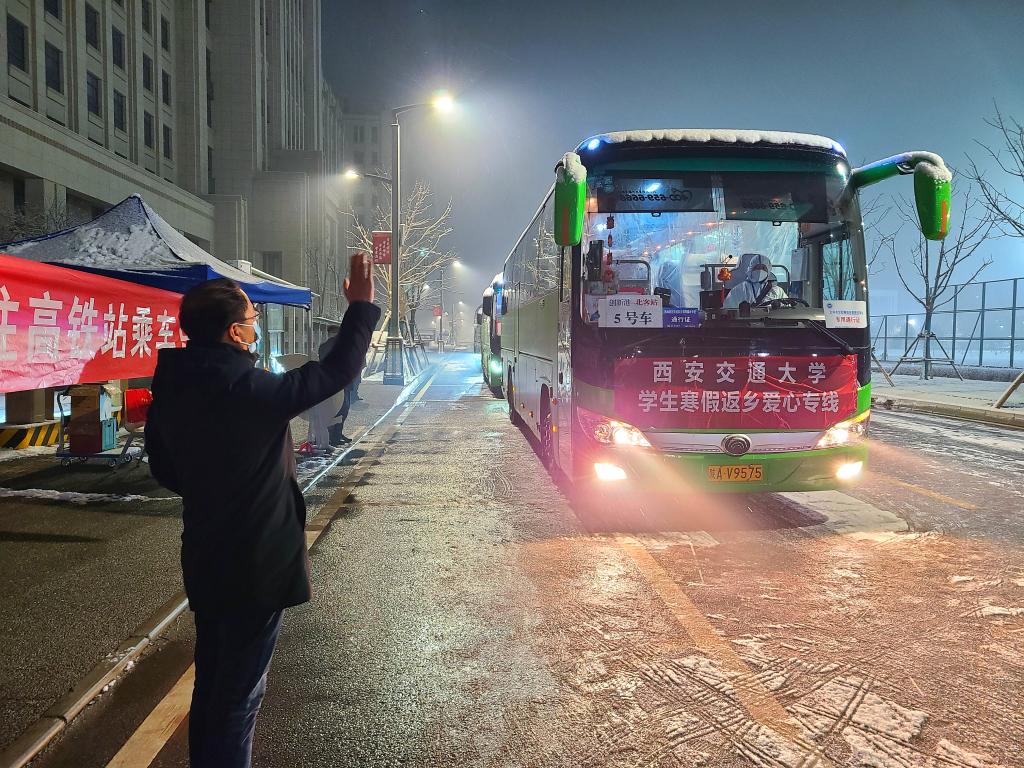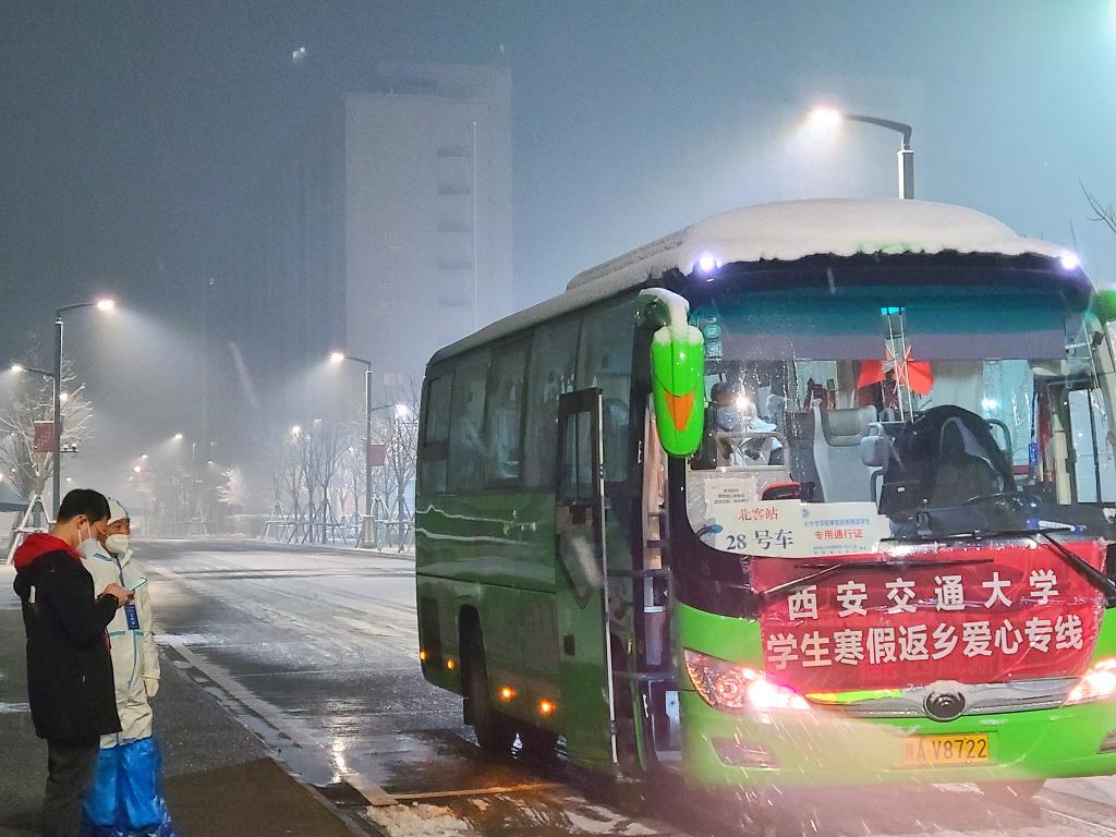 飞雪悄入夜,西安变长安。漫天雪花装点了冬天,却也为离校返乡的学子出行带来不便。在西安交大校园里,护送学子回家这场爱的接力不曾间断,兴庆校区、雁塔校区、创新港,全校联动,温暖守护学子回家。