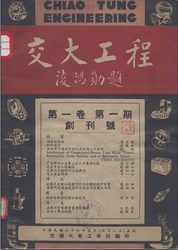 1947年4月淩鸿勋为《交大工程》第一卷第一期创刊号题写刊名
