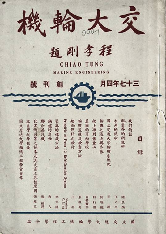 1948年4月《交大轮机》创刊,程孝刚题写刊名