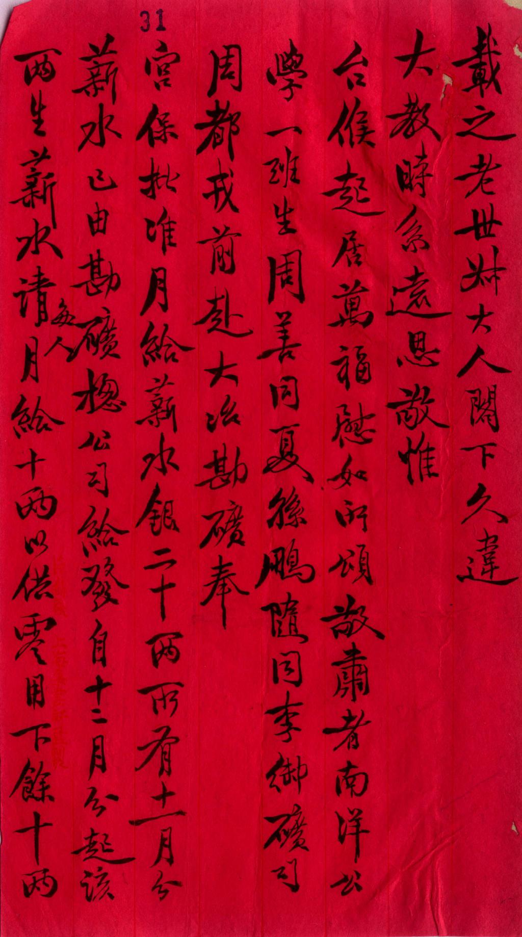 1908年张元济致杨士琦信函,有关留美学生严锦荣赴德国游学学费一事。