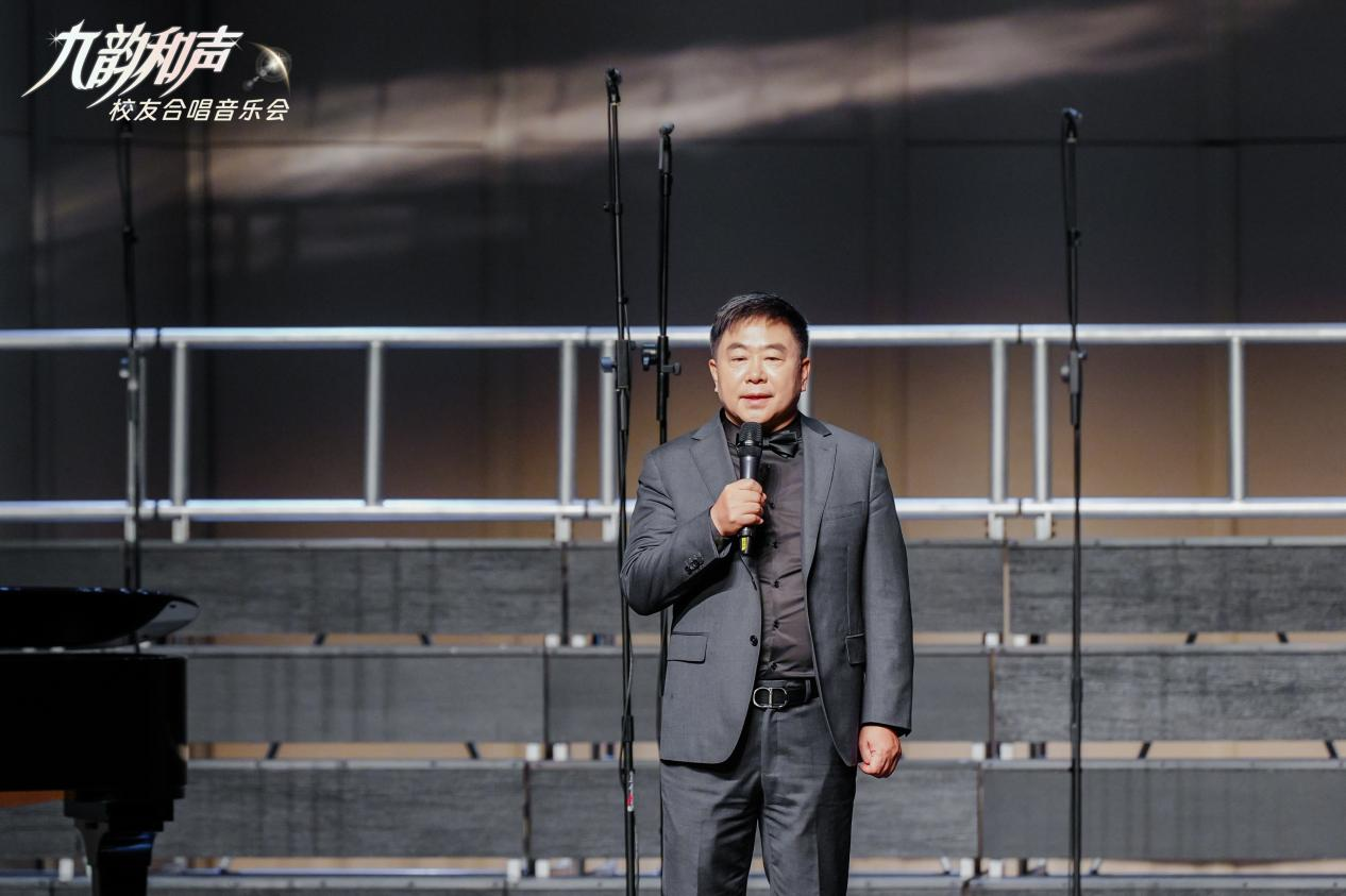 本次音乐会的曲风多元,既有经典歌曲,更有粤语金曲。多样化的曲风让每一位观众都能触动心弦,然而歌者和声却有异曲同工之妙,就像校友们性格各异却志气相投。合唱的人注定合拍,同频的人终将同行。在“九韵和声”的夜晚,于校友们余音绕梁的优美和声中,你我终将被这束同频之光照亮,拼搏的道路上携手同行。