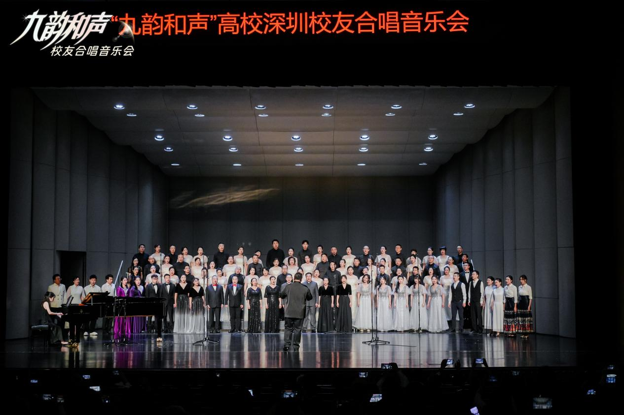 音乐会上,深圳市上海交通大学校友会“思源合唱团”、深圳市清华大学校友会“清华人合唱团”、深圳市浙江大学校友会“启真合唱团”、深圳市南京大学校友会“心声合唱团”、深圳市南开大学校友会深圳校友会“创新科合唱团”、深圳市中国人民大学校友会“深圳市一勺池合唱团”、深圳市华中科技大学校友会“喻见合唱团”、深圳市兰州大学校友会“萃英合唱团”、深圳市西安交大校友会“梧桐樱合唱团”依次献上无与伦比的精彩演绎,他们在和声中歌颂情谊,或缅怀青春、或展望未来,他们虽然来自不同行业、不同年龄段、不同背景,但音乐的力量让大家彼此链接,心意相通、同频共振。