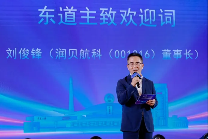 润贝航空科技股份有限公司董事长刘俊锋介绍到场嘉宾并致欢迎辞。他感恩母校的培养,对参加此次活动的学校领导、行业专家和校友表示热烈的欢迎和衷心感谢,希望校友们传承西迁精神,把握时代机遇,汇聚力量,团结协作,迎接挑战,并祝福母校蓬勃发展。