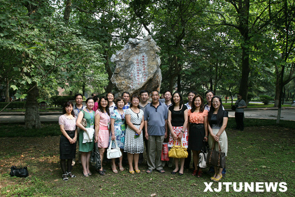 1986级校友向母校捐赠景观石仪式揭开了返校活动序幕。捐赠仪式上,朱宏亮教授代表学校向返校校友表示热烈欢迎,对校友捐赠母校表示感谢,并向校友们简要介绍了医学学科在合校后的发展。他说,医学学科在大家毕业后的二十年发生了很大的变化,合校后,依托西安交通大学综合性大学的学科支持,一直保持着良好的发展态势,生理学、法医学和泌尿外科3个学科被评为国家重点学科,学科综合排名不断前进,在科学研究、教师队伍建设、人才培养等各方面都取得了可喜的成绩,而学科取得的成绩离不开校友们的支持,希望广大校友继续与母校保持密切联系,支持母校的发展。医学院副院长陈腾向校友们汇报了学院的发展情况和科学研究成绩。随后,薛仁辉校友向大家介绍了景观石的寓意,朱宏亮、李旭、陈腾等领导和老师共同为景观石揭幕。随后,在医学院行政楼前合影,全体校友前往东方大酒店参加返校庆典。