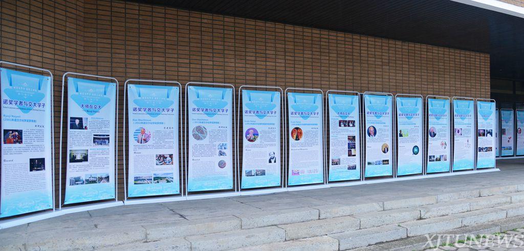 在科学馆一楼,展出了2005年以来,十年间到访西安交大的24位诺奖学者的人物资料,62块展板分为3个系列——学者概览、科研成就、大师在交大,图文并茂记录了他们与交大学子间智慧的互动交流,他们其中三位也将于双甲子校庆期间为全校师生和广大校友带来精彩的报告。展览旨在培养交大学子放眼世界、关注科技前沿的科学精神,展示学校厚重的学术积淀和开放的国际化形象。