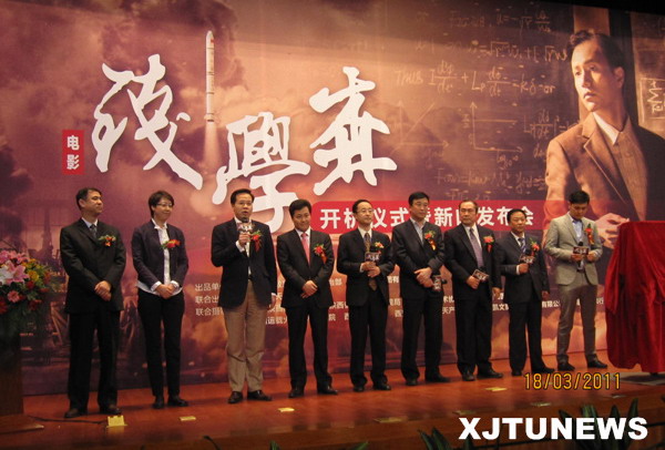 3月18日下午,电影《钱学森》开机仪式暨新闻发布会在中国科协大会堂隆重举行。国家广电总局副局长张丕民、中国侨联党组书记林军、解放军总装备部杨利伟少将、陕西省委宣传部部长胡悦、钱学森之子钱永刚及我校副校长卢天健等出席开机仪式。