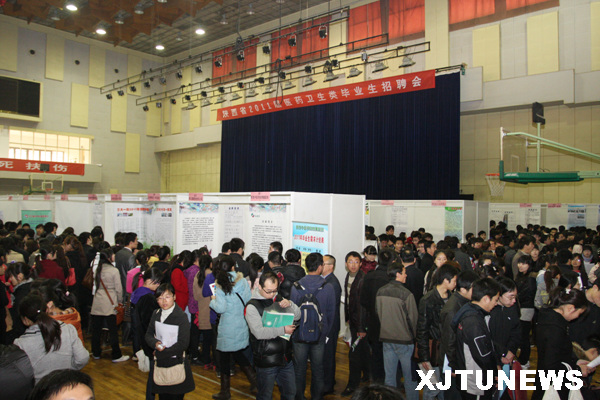 3月25日,陕西省2011届医药卫生类毕业生春季招聘会在我校医学校区505体育馆举行。此次招聘会共吸引了148家医药卫生类企业来校,包括医院、卫生局、疾控中心、制药公司、医疗器械企业、医学教育机构以及其他公司企业等,提供就业岗位5000余个。初步统计,参加此次招聘会的毕业生约4000人次。