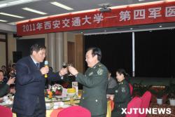 2011年西安交通大学—第四军医大学联谊会于2月27日下午在南洋大酒店举行。我校党委书记王建华,第四军医大学政治委员戴旭光、校长樊代明等两校领导,以及学院、部门、附属单位负责人等欢聚一堂,共叙友谊,畅谈合作,共谋发展。