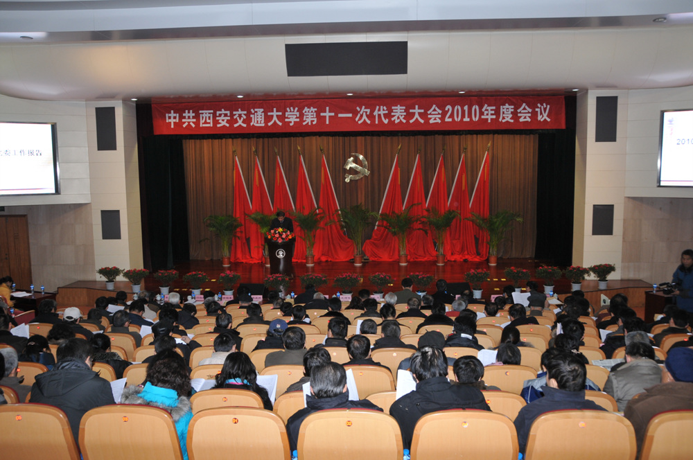 1月7日下午,在雄壮的国歌声中,中共西安交通大学第十一次代表大会2010年度会议在主楼多功能报告厅隆重召开。学校党政领导和全校240多名正式及列席代表参加会议。大会由校党委常务副书记王小力同志主持。