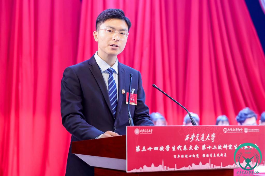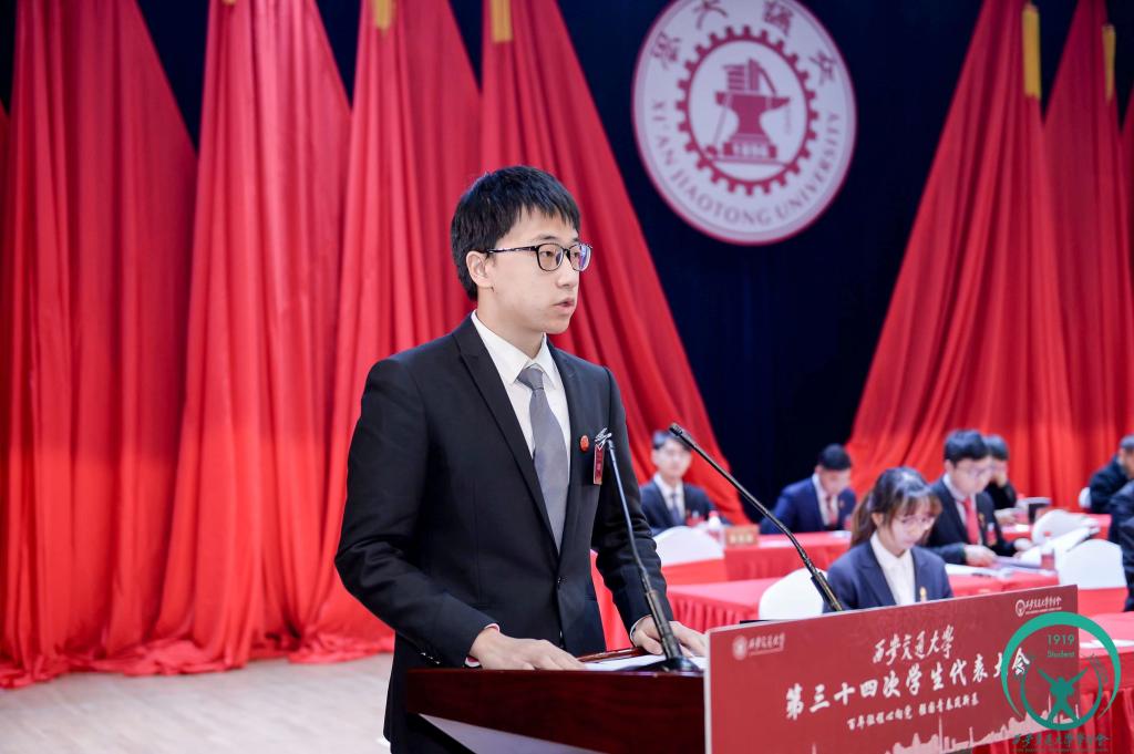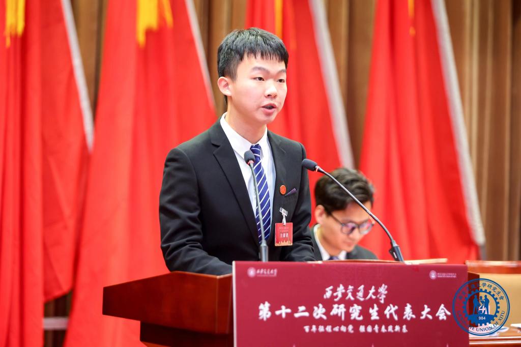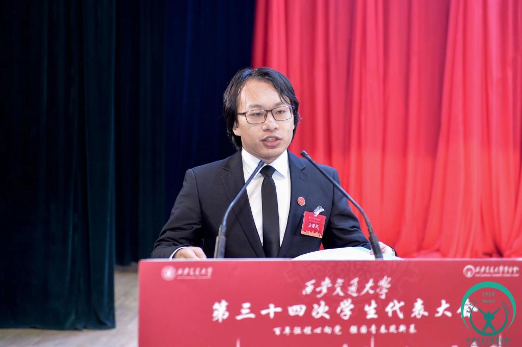学生代表大会副秘书长武泽祯和研究生代表大会主席团成员付涛代表大会发出倡议,号召全体交大学子认真学习党的十九届六中全会《决议》,继承发扬伟大建党精神,争当西迁精神新传人,争做强国奋斗新青年。