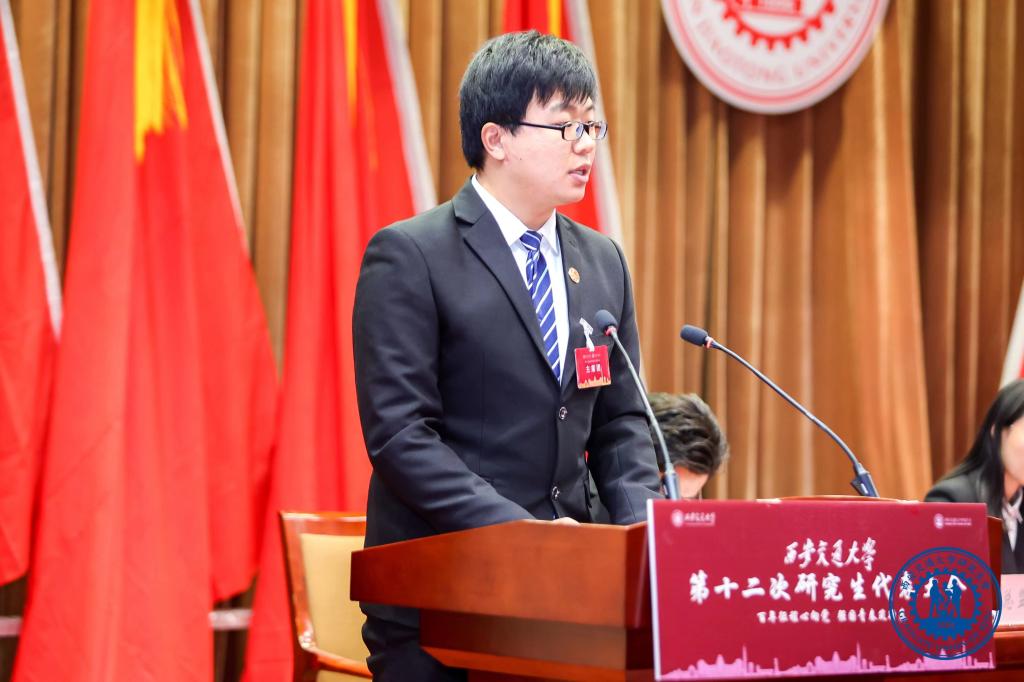 第十二次研究生代表大会主席团成员范梦晓提到,过去的一年,西安交大各级学生会、研究生会扎实开展各项工作,取得了多方面的突破,获得了优异的成绩。希望学生会和研究生会组织以本次大会为契机,团结和引导同学进一步增强做中国人的志气、骨气、底气,不负时代,不负韶华,为全面建成社会主义现代化强国的第二个百年奋斗目标贡献青春力量。