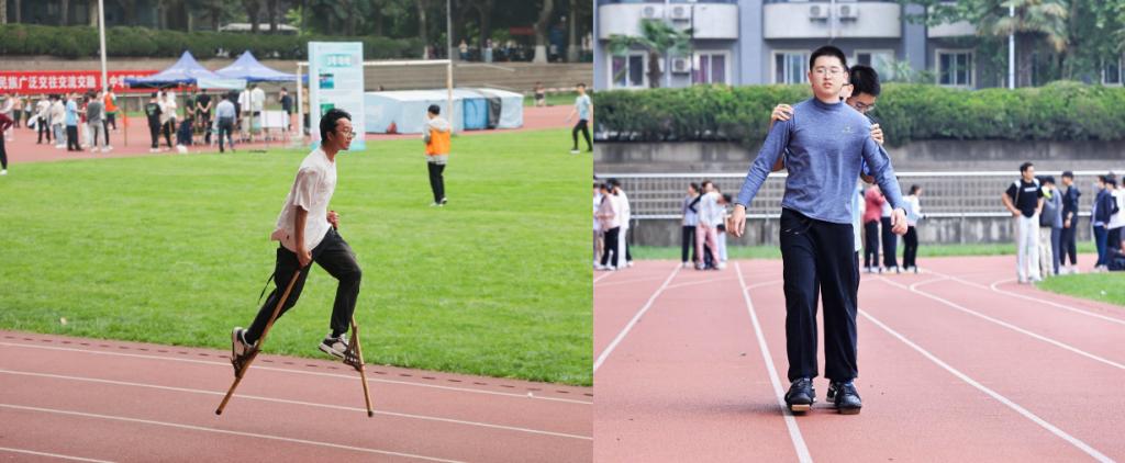 高脚竞速、板鞋竞速,运动员虽然被束缚在高跷上、板鞋上,依然行动自如,英姿飒爽,运动员们从容不迫、大显身手,团结互助、奋勇前行。