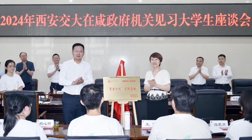 双方共同为“西安交通大学-咸阳市人民政府‘攀登计划’”实践基地揭牌。未来,西安交通大学、咸阳市人民政府将持续推进“攀登计划”实践基地建设,引导见习学生继承交大光荣传统,脚踏实地,在基层建功立业,仰望星空,共追逐青春理想,为国家建设、社会发展贡献力量。