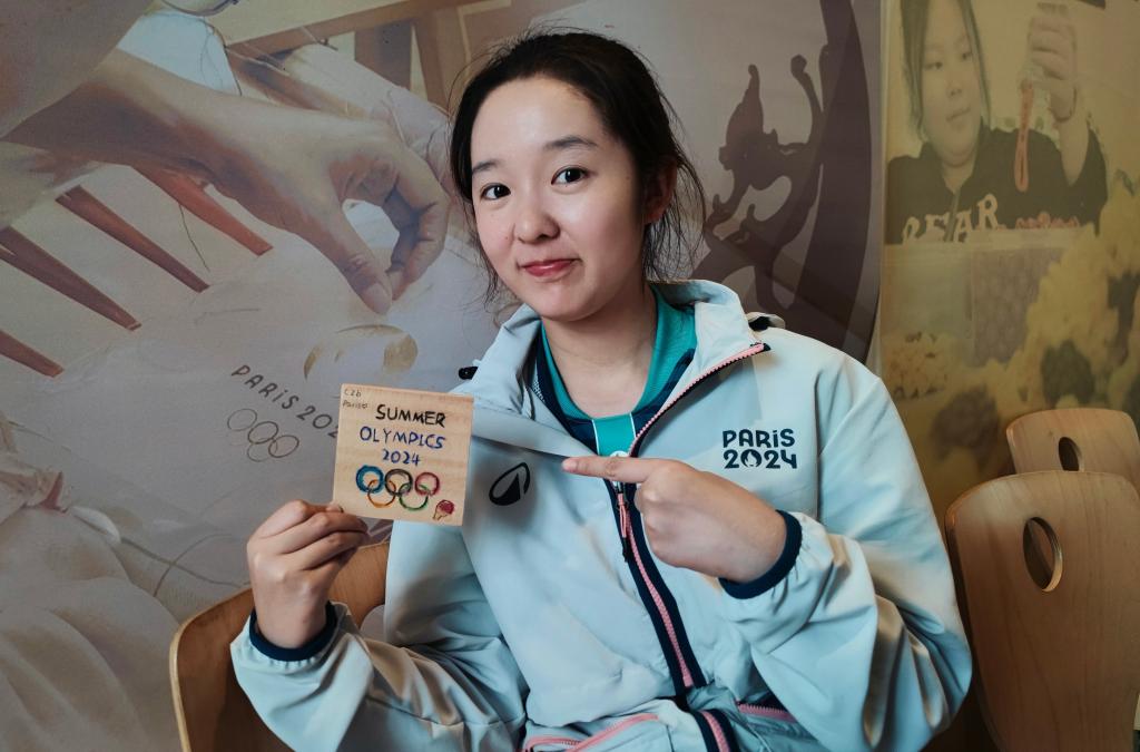 遗憾的是,参观当日从“中国之家”移交到巴黎中国文化中心的体育展品还未对外开放,但却正值“美丽工坊·绽放巴黎”中国残疾妇女文创作品展,现场汇集了近300件工艺精湛的文创作品,鱼皮雕、盐雕、刺绣、竹编、绒花等蕴含着非凡匠心与文化底蕴,带给观众视觉与心灵的双重撞击。陈倬冰也参与到了展品DIY环节,直观感受制作的乐趣。“这些展现了中国传统文化与奥林匹克精神的深度融合,赛场外的文明交流互鉴与赛场上的不屈体育灵魂交相辉映。”她说。