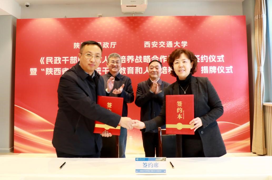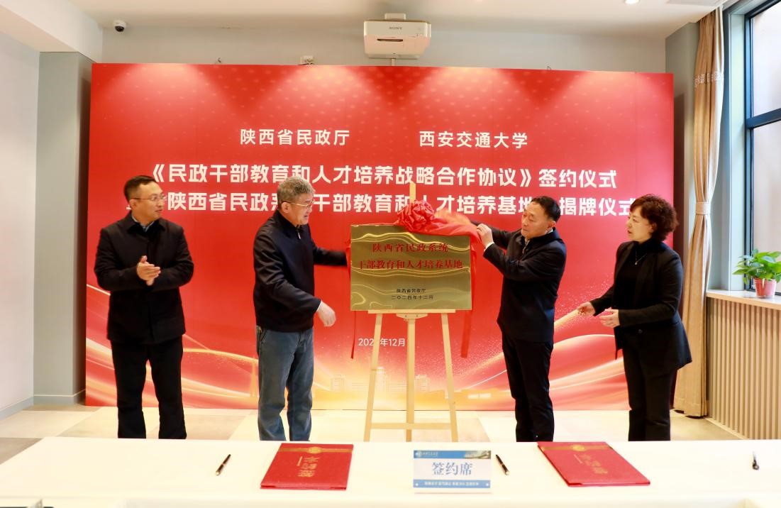 12月28日上午,西安交大与陕西省民政厅签署《民政干部教育和人才培养战略合作协议》并揭牌成立“陕西省民政系统干部教育和人才培养基地”。陕西省民政厅党组成员、副厅长戈养年,西安交大党委副书记孙早出席仪式。