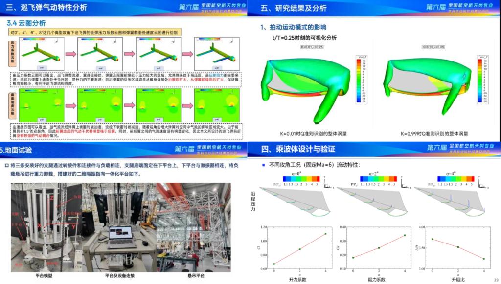 飞行器设计与工程专业张玉鑫同学毕业设计《单兵电动巡飞弹总体设计与气动特性分析》(指导老师:张扬副教授)、王舒歆同学的《前飞条件下不同运动模式对扑翼气动力的影响》(指导老师:孟雪广副教授)、马嘉轩同学的《空间光学载荷隔振指向一体化平台设计及控制研究》(指导老师:周建副教授)以及龚继铭同学的《高超声速乘波体的流动特性研究》(指导老师:左逢源副教授)荣获优秀奖。
