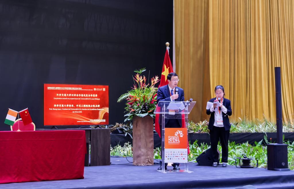 张立群在致辞中回顾了西安交大的办学历程及办学特色。张立群指出,中非合作战略部长级研讨班的举办,是以实际行动践行“携手推进现代化,共筑命运共同体”的具体举措,相信在中非政府和产学研各界的支持下,举办研讨班将进一步增进了解、凝聚共识,为赓续中非全天候友谊作出贡献。