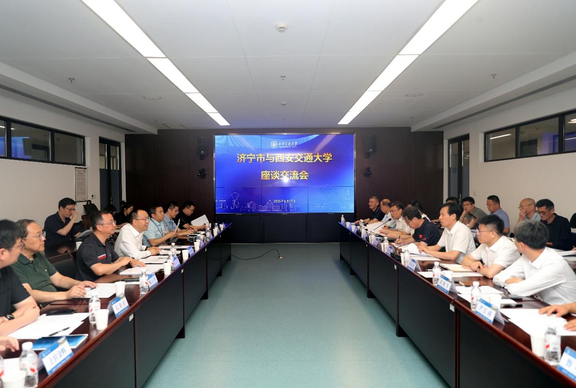 卢建军对庞建栋一行表示欢迎。他表示,作为孔孟之乡、运河之都,济宁市不仅拥有得天独厚的自然资源禀赋和深厚的文化底蕴,更展现出蓬勃的经济发展活力。近年来,济宁市在产业升级、科技创新、人才引进等方面取得了显著成效,特别是在高端装备制造、新一代信息技术、新能源新材料、医养健康等新兴产业领域呈现出强劲的发展势头。西安交大积极探索校企地一体联动、产学研深度融合,并在人工智能、化学化工、医工交叉、微电子、新材料等前沿学科领域具有显著优势,与济宁市重点发展的新兴产业布局契合度高,校地合作空间广阔、潜力巨大。希望双方以此次交流为新起点,进一步深化对接,重点围绕产学研协同创新、科技成果转化、高层次人才引进等领域,共建高能级创新平台,推动更多务实合作项目落地见效,为校地高质量发展注入强劲动能。