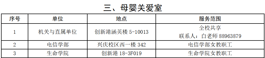 职工小家及母婴关爱室分布表