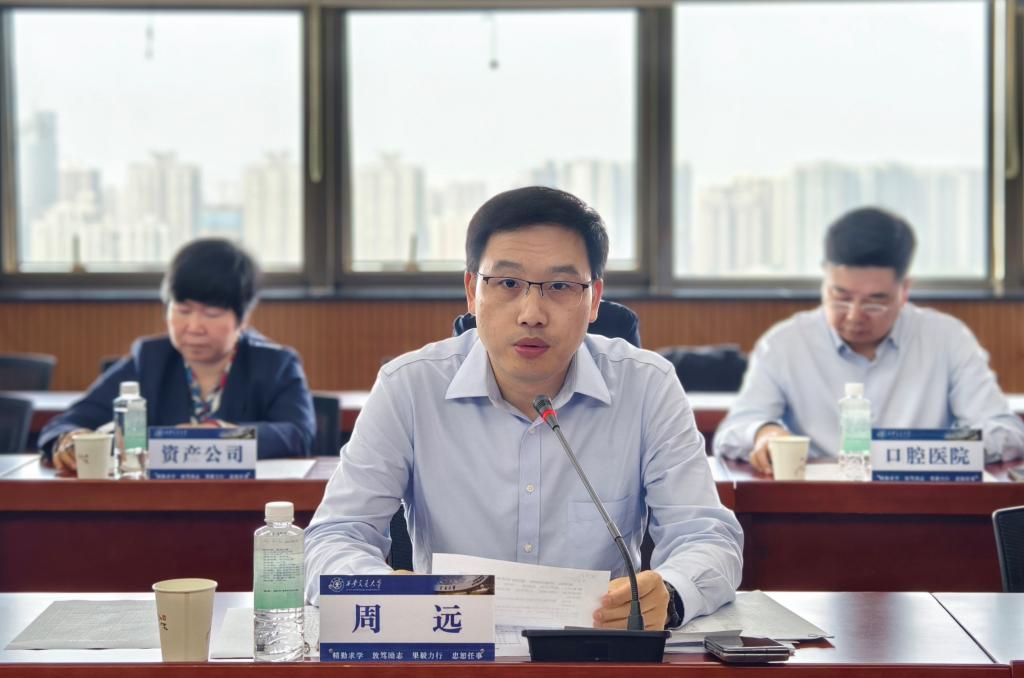国资处、后勤保障部、基础教育管理处、图书馆、实践教学中心、资产公司、出版社、一附院、二附院、口腔医院、电信学部、材料学院、人居学院、医学部、法学院、继续教育学院等部门负责同志参会。