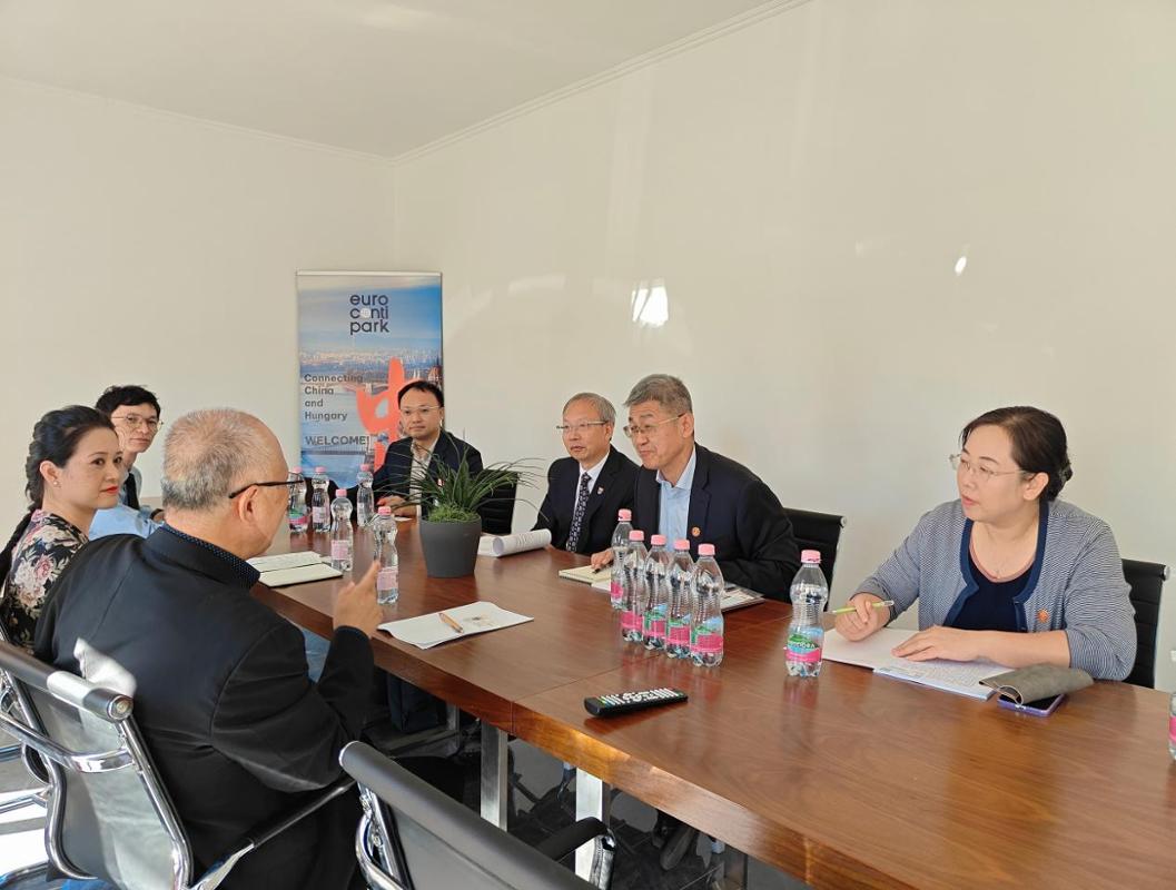在欧侨产业园区,董事长詹晓荣、匈牙利安徽商会秘书长汪燕子、赛麦维斯医科大学李信达博士等会见代表团。詹晓荣详细介绍了匈牙利的区位优势和中匈友好合作环境。代表团介绍了西安交大总体情况,特别是人文社科领域的深厚积淀。双方围绕商科和医学领域的联合培养与科研合作进行了深入交流。双方就深度拓展与当地高校合作,由园区和企业承载合作项目等达成初步共识。詹晓荣表示,将提供园区作为“本地化人才实训基地”,推动人才“实习——就业——提升”无缝衔接。