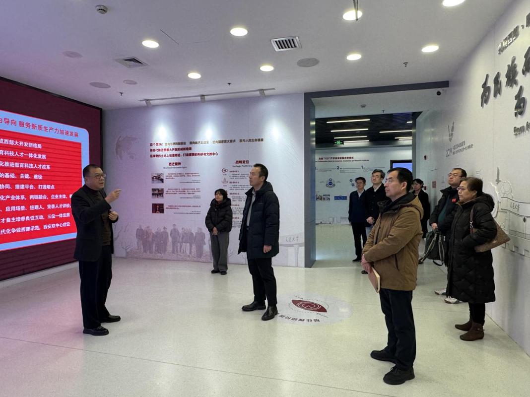 1月12日,新华社陕西分社社长、分党组书记冯冰率队到创新港调研。西安交通大学党委书记卢建军在数字展厅为冯冰一行介绍了学校发展历程,以及学校在新时代传承弘扬西迁精神,积极推进教育、科技、人才“三位一体”融合发展情况。新华社陕西分社副社长杨玉玲,分社分党组成员、总编室常务副总编辑贺占军,分社总编室副总编辑张京品参加。