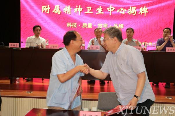 颜虹副校长和刘顺智主任共同为西安交通大学医学部附属精神卫生中心揭牌。