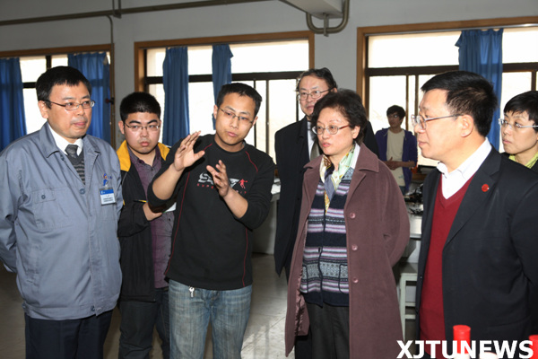 吴启迪常委一行还参观了机械制造系统工程国家重点实验室。实验室主任李涤尘教授汇报了实验室的情况。走进快速成型实验室、反求测量实验室、微纳制造实验室,吴启迪常委详细了解了实验室运转、仪器设备、科研成果等情况。