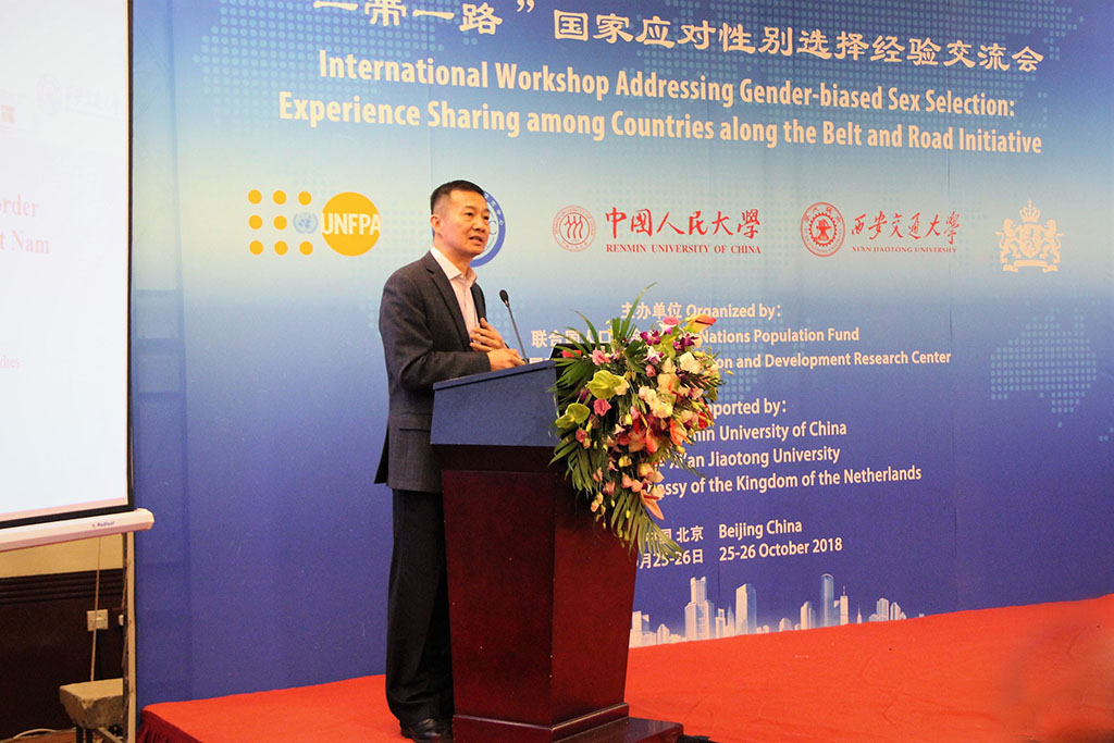 10月25-26日,由联合国人口基金驻华代表处、中国人口与发展研究中心联合主办,中国人民大学、西安交通大学和荷兰驻华大使馆支持的“一带一路”国家应对性别选择经验交流会在京召开。本次研讨会主题为“基于性别偏见的性别选择”(Gender-biased Sex Selection, GBSS),来自中国、孟加拉国、柬埔寨、印度、亚美尼亚、格鲁吉亚、越南、阿塞拜疆、韩国、尼泊尔、法国、美国等国的政府部门、学术机构和智囊团体,联合国人口基金总部、区域和国家办公室、国际组织等100余人参加本次会议。在为期两天的研讨会上,代表们就如何应对基于性别偏见的性别选择展开交流,并为落实2030可持续发展议程提出建议。