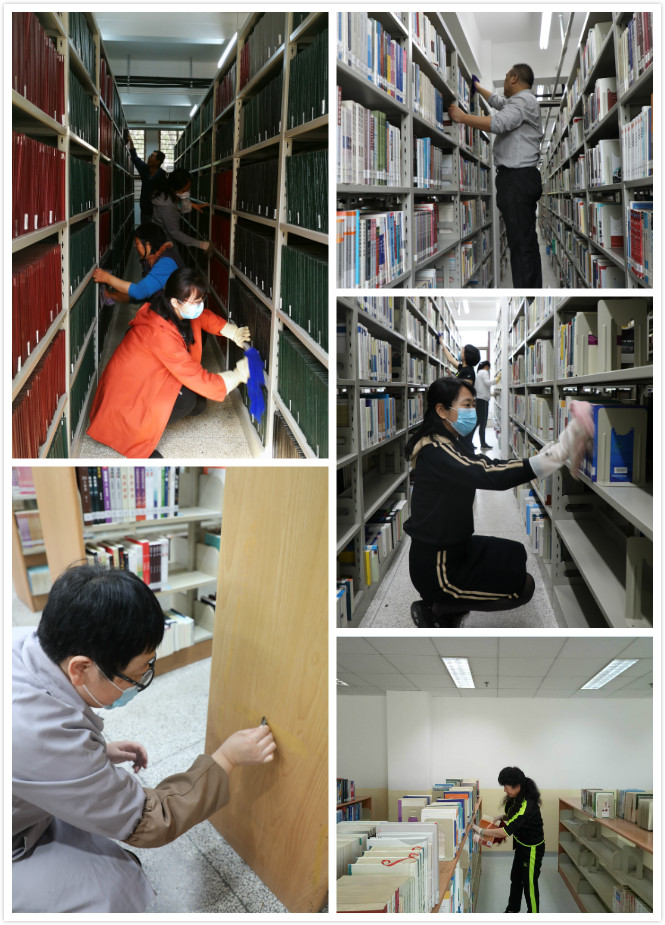 开馆的防控工作是第一抓手,图书馆严格落实疫情防控工作要求,强化管理和预防举措,做到“风险降到最小,最大限度开展业务工作”。图书馆制定了全方位防疫方案,包括环境消杀、通风、中央空调使用等方案;五一假期前,图书馆对公共设施包括空调、消防、灯具、电梯等进行再一次全面检查,并组织全体馆员开展书架整理、卫生打扫等工作;多渠道补充防疫物资,一次性口罩、手套、免洗洗手消毒凝胶、置书袋、紫外线消杀毒设备等物资准备就绪。