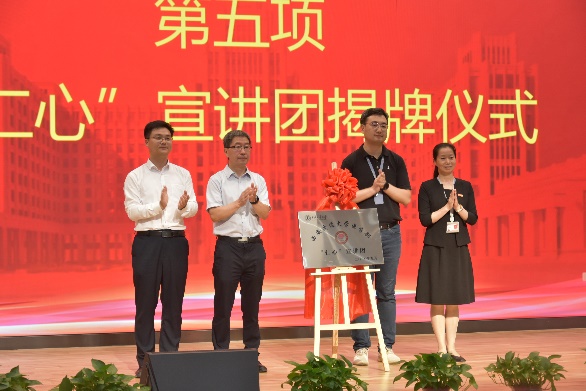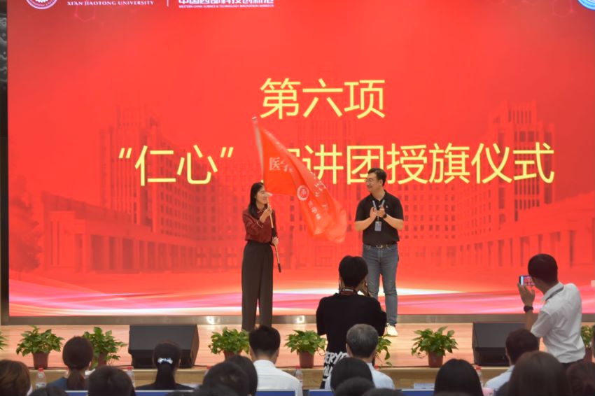 杨琪、苏翔、梁辉、陈莉娜共同为 “仁心”宣讲团揭牌,梁辉为“仁心”宣讲团团长刘宣授旗。梁辉对宣讲团的建设提出“找准定位、形成特色、知行合一”三方面明确要求。随后,聘请苏翔、梁辉为“仁心”宣讲团宣讲顾问,陈莉娜、陈晨、岳甜、张华东为宣讲团指导老师,罗花南医生、范波校友为宣讲团特约宣讲人。