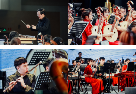 《西部民歌主题组曲》的演奏迅速将观众带到了广袤无垠的西北地区,乐曲串联了《在那遥远的地方》《达坂城的姑娘》《掀起你的盖头来》《青春舞曲》几首脍炙人口的乐曲,让轻盈洒脱、情绪活跃的气氛更加突出。古筝协奏曲《云裳诉》是以《长恨歌》为素材改编而成的一首古筝协奏曲,描写了杨贵妃与唐玄宗之间流传百世的爱情故事,将传统秦筝曲的古朴和现代筝曲的旋律和谐地融为一体,艺术感染力极强。音乐会最后,一首《我的祖国》与观众见面,歌曲旋律振奋人心、脍炙人口。阵阵稻花香两岸的旋律余音绕梁,让人回味无穷。